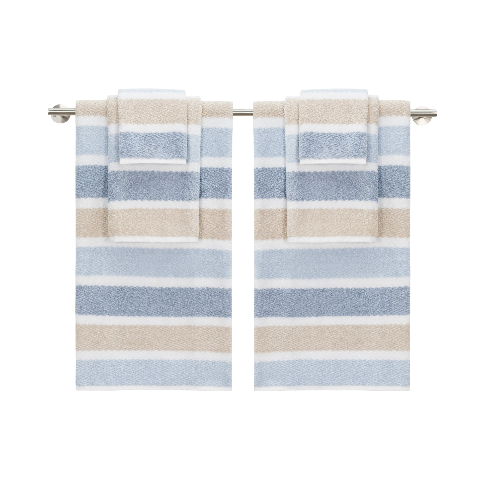 Montague turns everyday bathing into a moment of ease. Woven in plush zero-twist cotton, these towels feel cloud-soft against the skin while adding gentle rhythm and color to your bath. Available in Radiant Grey and Silvery Blue Oatmeal, the set includes 2 bath towels, 2 hand towels, and 2 washcloths. Designed to mix seamlessly into daily life.